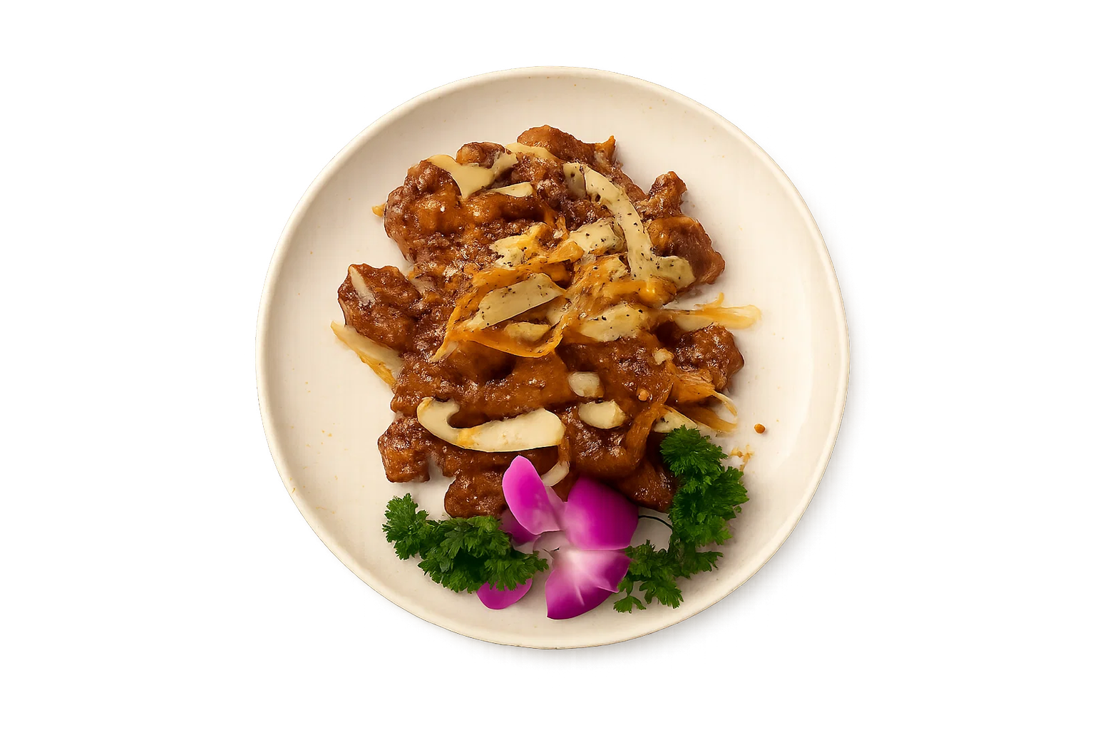 Le bœuf croustillant est un plat intense et savoureux, apprécié pour sa texture unique. Le bœuf est préparé de manière à être croustillant à l’extérieur tout en restant tendre à l’intérieur, puis relevé par un assaisonnement typiquement chinois.