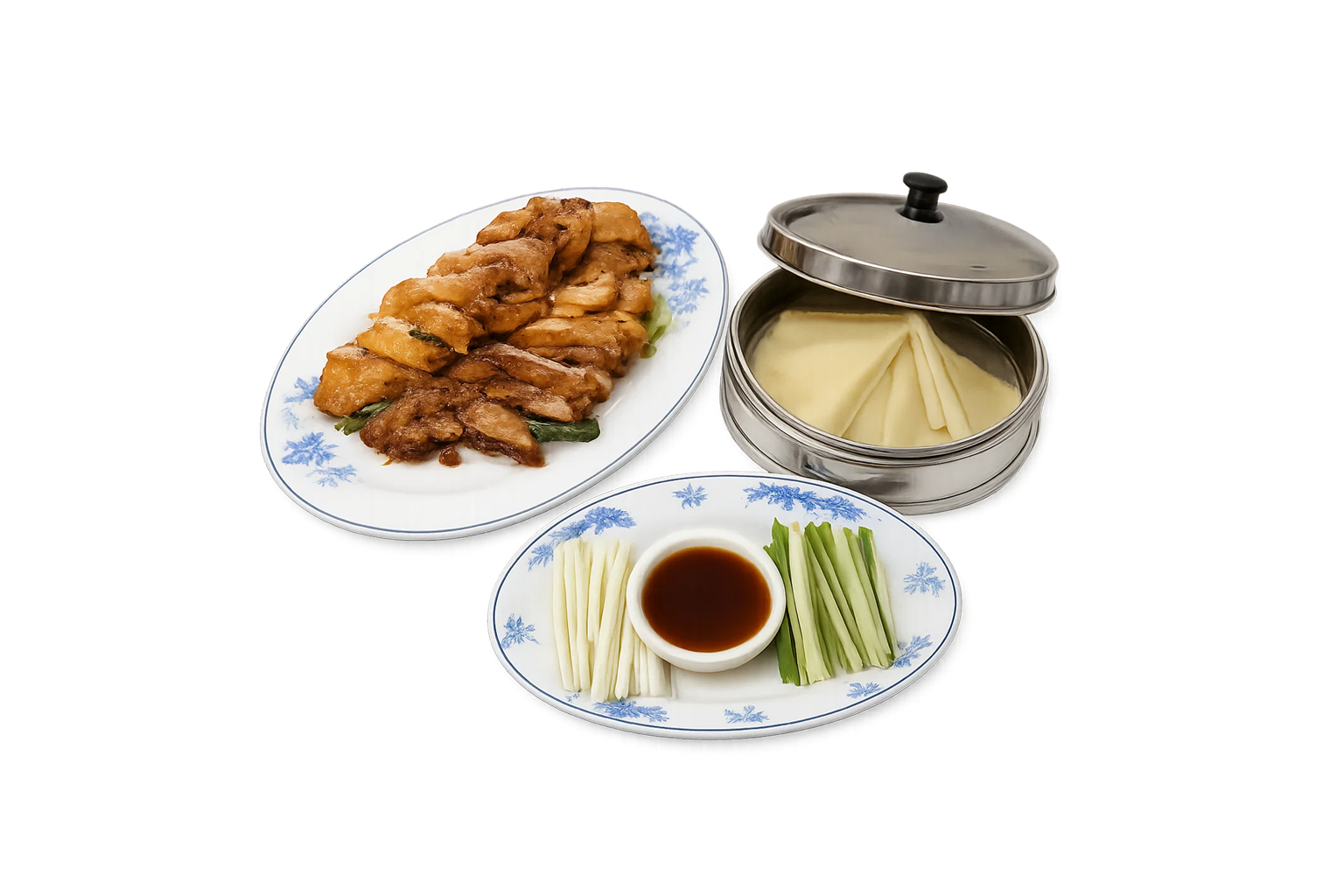 Le canard laqué avec crêpes est une spécialité emblématique de la gastronomie chinoise. Le canard est servi avec de fines crêpes, permettant de composer soi-même des bouchées savoureuses, alliant croustillant et fondant.