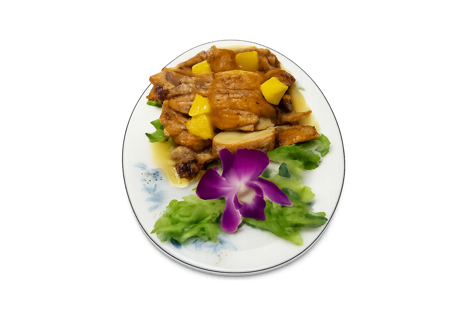 Le canard laqué parfumé à l’orange est un plat raffiné alliant la richesse du canard à la douceur acidulée de l’orange. Sa sauce laquée brillante enrobe la viande pour offrir une harmonie parfaite entre sucré et salé.