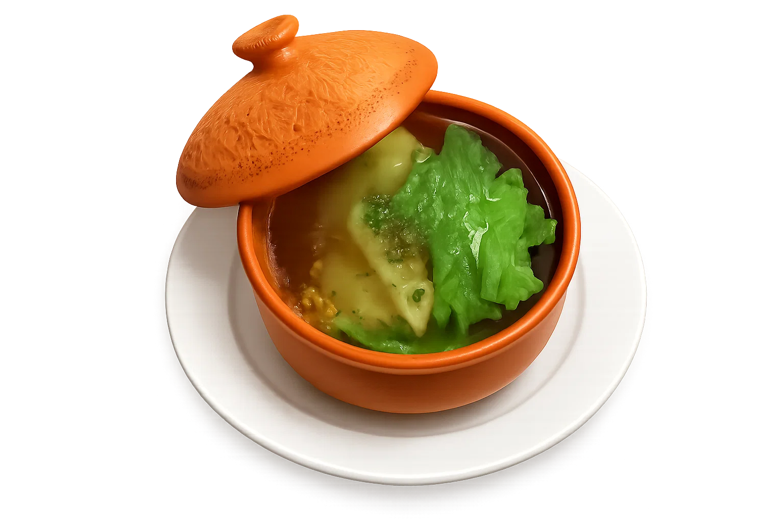 Le potage aux raviolis won-ton est une soupe traditionnelle chinoise composée de raviolis délicatement farcis, servis dans un bouillon clair et parfumé. Cette soupe généreuse et réconfortante est idéale pour ceux qui recherchent une entrée savoureuse et nourrissante.
